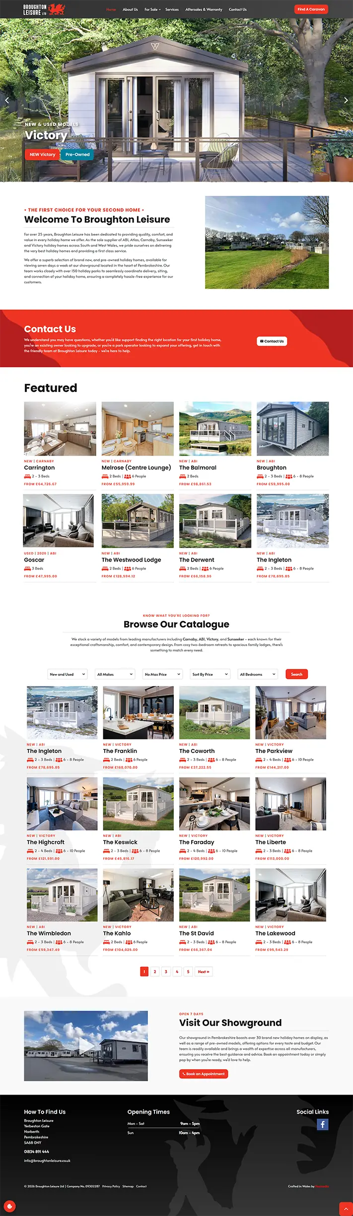 For Broughton Leisure, we designed and built a modern, user-focused website to better showcase their range of holiday homes and streamline the customer journey. The navigation was refined to make it easy for users to explore available models, key information and services.